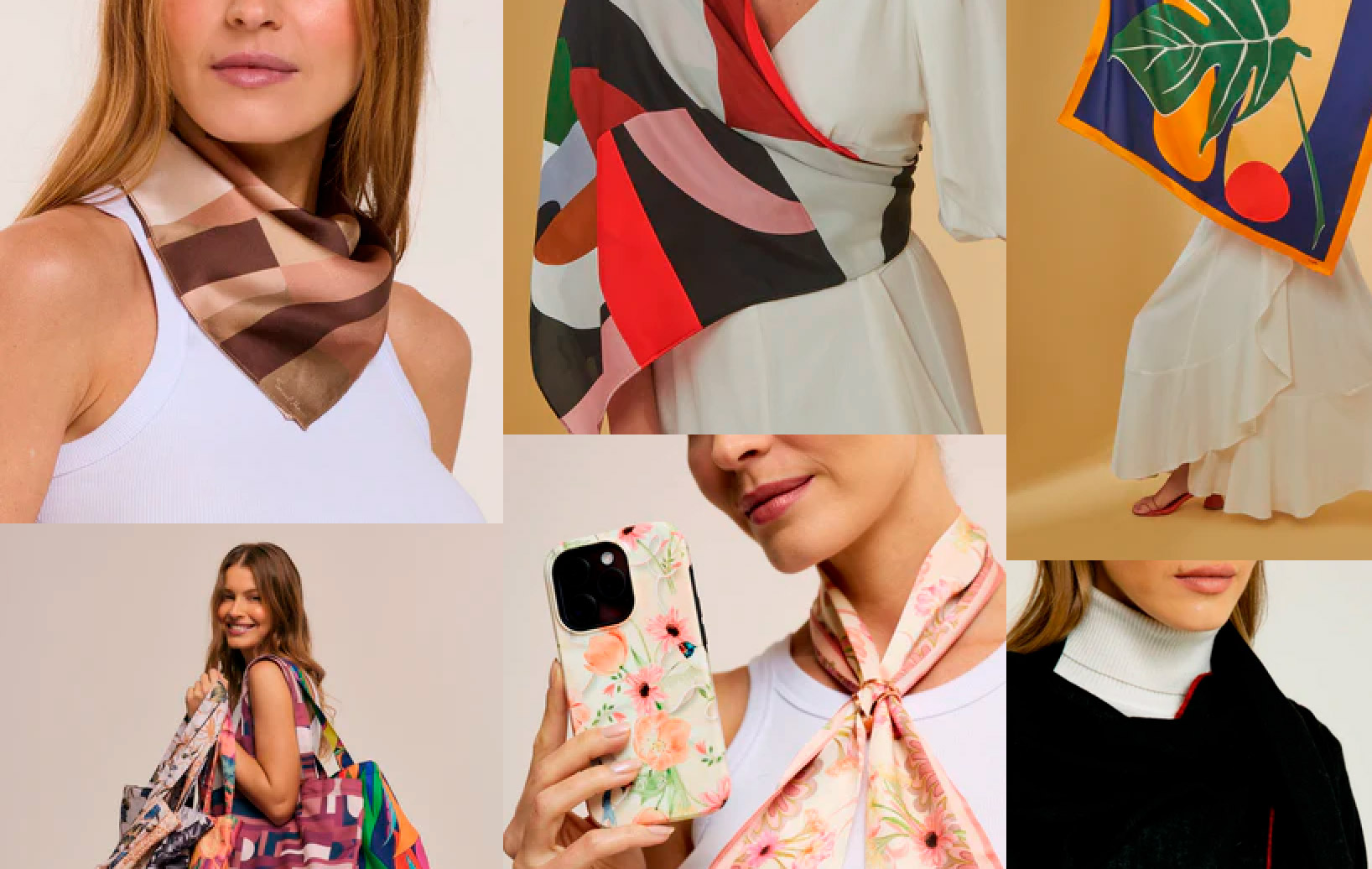 Beyond its classic placement around the neck, each piece can be styled as a top, a hair or bag accessory, a belt, and more — adapting to every personality.